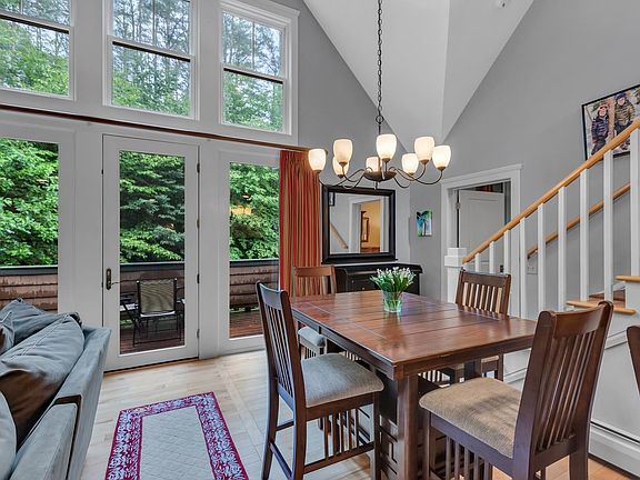 Welcome to The Castle Hill Resort and Spa where you'll find this beautiful four bedroom, three and a half bath, with loft condominium. The recently renovated kitchen with granite counters and stainless steel appliances is open to the living, dining area. Which have soaring cathedral ceilings a wall of windows flooding in natural light. A french door leading to the spacious deck to take in the Vermont fresh air is private with wooded views. Enjoy the flames of the living room gas fireplace on the plush sofa after a long day on the slopes. The entire condo has been tastefully decorated by a professional and the furnishings are included are in great condition. The spacious primary suite is fit for any king or queen. The two person jetted tub and custom tiled separate shower with seat complete the primary bath. The second bedroom en-suite, has it's own sitting room that can be locked out and rented separately. Upstairs to the bunk room, 3/4 bath, loft area and bonus room are a great space for guests. The amenities at the Castle include the Aveda Spa, workout facility with Life Fitness machines, free weights and a cardio room, inground heated year round salt pool, hot tub, tennis and pickle ball courts. Enjoy the culinary delight of Chef Fonz who is on premise at the Castle Restaurant and Inn, providing meals fit for a King! Choose this condo as your Vermont retreat and be treated like royalty at the Castle Hill Resort and Spa!