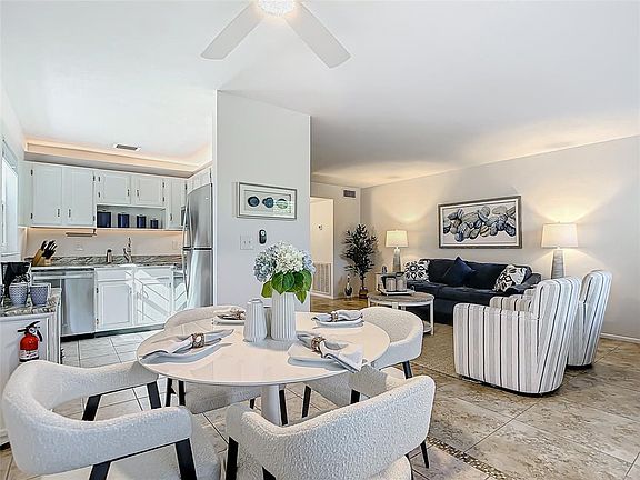 This unit has it all! Turn-key, First floor 1BR, 1.5BA corner unit. Light and bright. Newly furnished by Cozy Coastal Furniture & Decor. Tile floors Throughout. Granite countertops in Kitchen and Baths. New Stainless Steel appliances. Mew HVAC 2023. New tinted impact windows and doors throughout (2020) Call for a complete list of features. Unit backs up to the preserve in this quiet area of the community. Very active 55 plus community situated on the new Mangrove Sands Golf Club. Any current assessments will be paid by the Seller at closing. Bring your suitcase and enjoy the Winter season in Vero Beach.