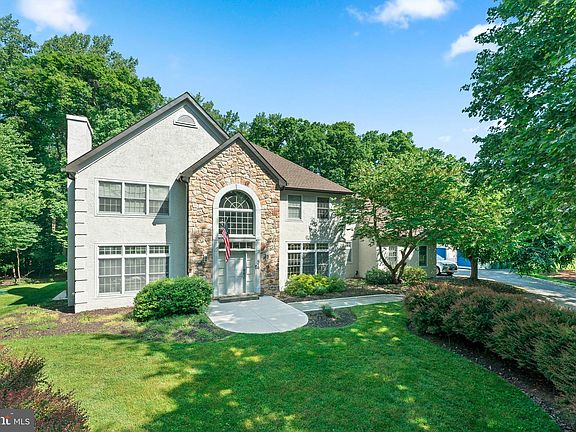 Discover your dream home at the end of a serene cul-de-sac in one of Doylestown's most peaceful neighborhoods. This elegantly renovated residence sits on a sunny, partially wooded lot, offering both privacy and natural beauty. Following an extensive renovation, every detail of this home has been thoughtfully designed to create a haven of comfort and style. As you enter through the grand two-story foyer, you'll be greeted by a circular staircase and newhardwood flooring that flows throughout the home. The foyer seamlessly leads into a cozy living room, featuring a fireplace adorned with reclaimed barnwood. Adjacent to this space is a bright and versatile office that can also serve as an additional bedroom. The heart of the home is the two-story family room, highlighted by a stunning floor-to-ceiling stone fireplace. This area opens up to an expansive gourmet kitchen, equipped with brand new cabinetry, quartz countertops, high-end appliances, and a beautiful center island. The formal dining room, bathed in natural light, provides the perfect setting for enjoying culinary delights. Upstairs, you'll find four spacious bedrooms, each with new lighting and fan fixtures. The bathrooms have been luxuriously updated with marble tiling, new cabinetry, and modern toilets. The modernized laundry room features marble flooring and a quartz countertop. Outside, the home offers a three-car garage and expanded parking with a paver area for guests. The curb appeal is enhanced by newly installed pavers and a bluestone front patio. The oversized basement with high ceilings presents an opportunity for further customization. Key upgrades include a new roof, freshly painted exterior, new HVAC system, well-pump, water-softener, reverse osmosis drinking water system, and much more. Located in the Central Bucks School District and just 2 miles from Doylestown Borough, this home is perfectly positioned to enjoy all that the Bucks County lifestyle has to offer. Following its stunning transformation, this turn-key residence seamlessly blends luxury and sophistication, creating a comfortable sanctuary for modern living.