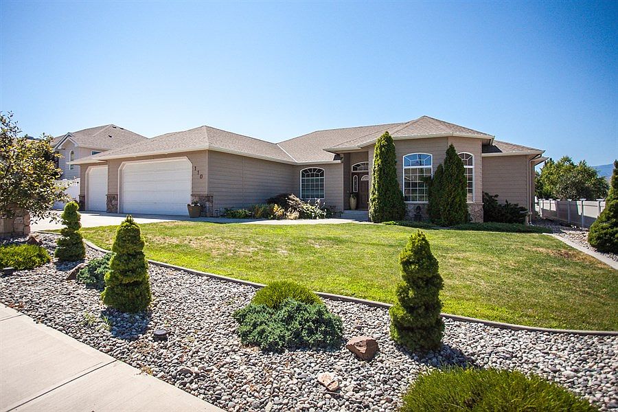 Walk in and enjoy soaring ceilings, big windows and open floor plan, all on one level. Large den can be used as a family room or guest room. Plus an office is off of the great room. Master is opposite end of the other bedrooms. Beautiful back yard and patio with views of Mission Ridge. Additional work shop or garden shed with plenty of RV parkin