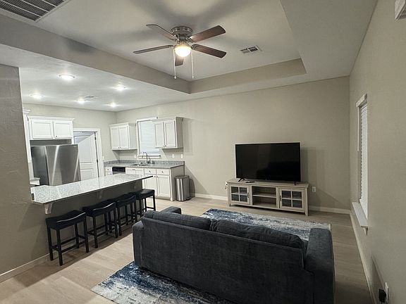 Discover modern comfort in this bright, open 2-bedroom, 2-bath home! Vaulted ceilings in the living room and 9-foot ceilings throughout create a spacious, welcoming vibe. The kitchen shines with granite countertops, a breakfast bar, stainless steel appliances, and plenty of storage.