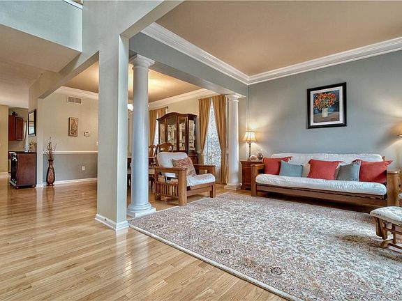 In Fishkill, Van Wyck Glen has a 4 bedroom 3.5 bath meticulous colonial W/ 3,089 SQFT of living space, 2-car attached garage, come in to a Spacious living room w/ hrdwd flrs throughout, open-concept to a dining area w/ entry leading to a Massive modern-flare eat-in kitchen w/ high ceilings, SSA, double wall oven, granite counters, & cherry wood cabinets. Enormous family rm w/ gas fireplace for guest entertainment. First floor also has home office & laundry rm leading to garage. Upstairs to a sprawling bright master w/ double doors & glamorous en-suite bath w/ jacuzzi, separate shower & walk-in closet. 3 large bdrms, w/ closet space & hrdwd flooring throughout.2nd bath w/ double sink vanity. Top it off w/ finished basement playroom. Attached large separate rm w/ double doors, wall to wall carpeted. Near shopping centers, schools, restaurants, bus route, close to I-84, RT-9, & off Route 52 for easy commute Hurry this masterpiece won't last!