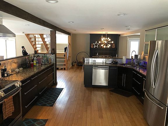 Urban meets bucolic at this newly renovated home just outside of Shawnee Village. You won't find a property like it--surrounded by trees and perched on the shores of a large creek with a quaint footbridge that connects you to your driveway and two-car garage--you will feel miles from the world yet only be a few miles from Shawnee Ski Mountain, Shawnee Village, the Delaware River, East Stroudsburg, and a variety of restaurants and shops in downtown Stroudsburg. This home has plenty of room for everyone with three upstairs bedrooms including an en suite master bedroom with oversized walk-in closet and an additional full bath and separate laundry room. The main floor boasts a modern open layout with bamboo floors, walls of glass, dining room, office, full bath, step down living room,two working fireplaces--one gas and one wood-burning. The remodeled kitchen has granite counters, stainless appliances, and an eat-in nook with a built-in bench. As a bonus, the bottom level offers additional finished living space and guest room. A must see with a deceptively small cottage-look from the outside and an expansive modern city feel on the inside. Just 75 miles miles from NYC, this is the perfect getaway. Seller is licensed PA REALTOR.