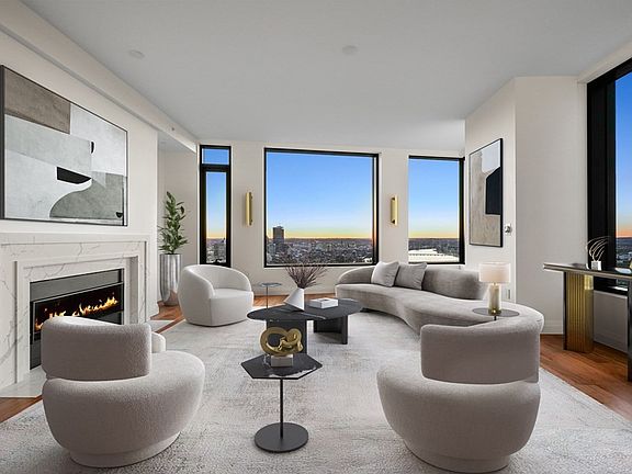 A sprawling 4600sq 5 bed + study, 6 bath residence in the sky offers the feel of a single family home with panoramic horizon views in the heart of downtown Boston, and 4 self-park garage spaces. A grand foyer welcomes you to a 22’x25’ living/dining with SW exposure overlooking the Charles and Back Bay to the left, and a 31’ W great room with sweeping views of the harbor/coastline to the right. 2 stone-surround gas fireplaces. Custom Scavolini kitchens, Carrara quartz counters, integrated Gaggenau appliances, wine cooler & wet bar. Primary suite has river views and marble ensuite w/ soaking tub. The Sudbury has 55 luxury condos starting on the 36th fl.. 25,000sf of amenities: outdoor heated pool w/ cabanas, 4500sf fitness center open 24/7, yoga studio, golf/sports simulator, outdoor dog run/pet spa, sky lounge/deck, chef's kitchen/private dining room & more. Homeowner exclusive amenities include a private lobby with 24/7 concierge, clubroom, and rooftop garden. 99 Walk |100 Transit