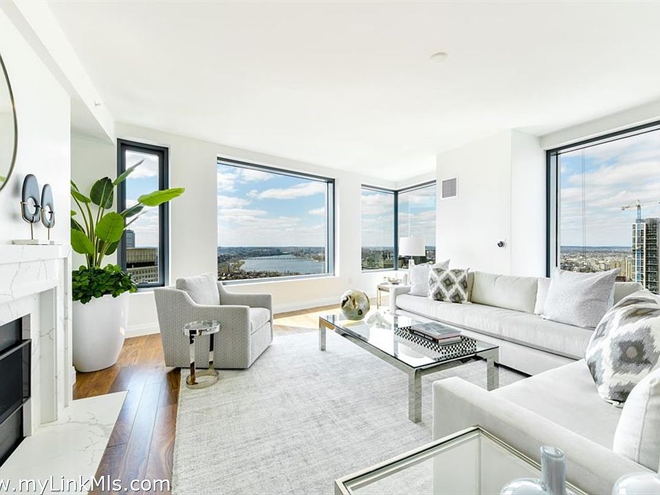 Introducing The Sudbury at Bulfinch Crossing! This boutique hi-rise consists of 55 luxury residences starting at the 36th floor with sweeping views, gracious floor plans, and 2 self park garage spaces. A grand foyer welcomes you to this 4 bed, 3.5 bath home. Western exposure provides this corner residence with show-stopping sunset views over the Charles River, Back Bay, Beacon Hill, and Cambridge. An expansive living/dining area is anchored w/ a stone surround gas fireplace. The open concept chef’s kitchen features custom Scavolini cabinetry, Carrara quartz countertops, Gaggenau appliances, wine fridge, and wet bar. The master suite offers spectacular river views, oversized dressing room, and luxurious marble ensuite with soaking tub. The guest wing houses 2 beds and 2 baths, laundry room, and a large study or 4th bed overlooking the river. 25,000SF of amenities include 24/7 concierge, pool, 4500SF fitness center, sky lounge & deck, plus a residents only clubroom & rooftop garden.