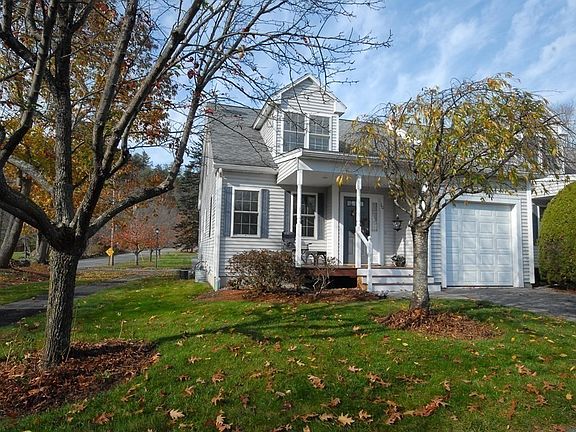 This popular 55+ Community "Summerfields" is conveniently located off of route 111, close to West Acton Village shops and eateries. A perfect country setting with a farmers porch welcomes you to this warm home. First floor foyer is flanked by handy interior accessed garage and dining room(currently being used for sewing and office) Kitchen with new SS fridge and center island for gathering is open to the living room with cathedral ceiling. Sliders lead to a finished three season porch. First floor also includes a main bedroom with full bath and walk in closet. Upstairs you will find a spacious loft with a separate full bedroom, full bath and plenty of storage. There is a full basement with two above grade windows and high ceiling, perfect for finishing to use as you please. The Summerfields complex is in a country setting ,yet close to shopping and other amenities . Enjoy carefree living allowing others take care of the exterior maintenance and landscaping. Welcome home!