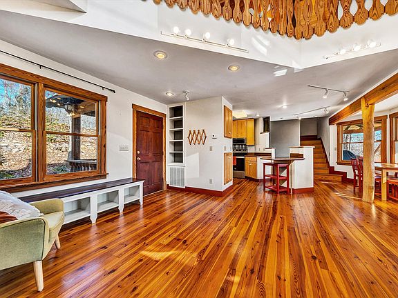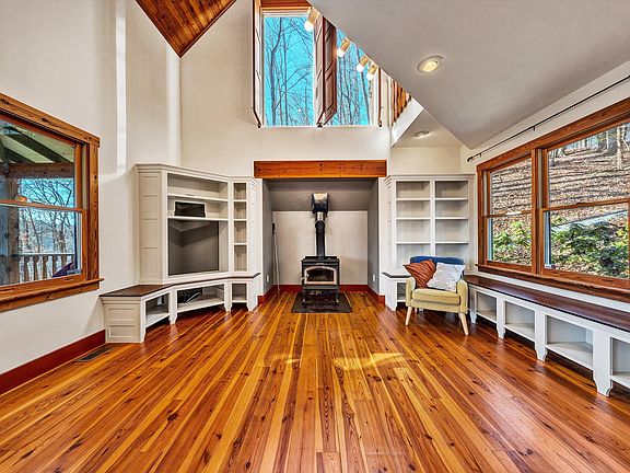 A stunning lakefront cottage, meticulously designed with custom-built features, offering an abundance of storage in cleverly crafted nooks and crannies. Handcrafted trim, moldings, and heart of pine flooring. Revel in the spaciousness with cathedral ceilings, open beams, and large windows for natural light. A dockside cabana adds to the allure of this lake front property. Recent exterior upgrades feature a newly graded crusher run driveway and gravel road leading from the house to the water which Includes erosion/water control for run off from hill.