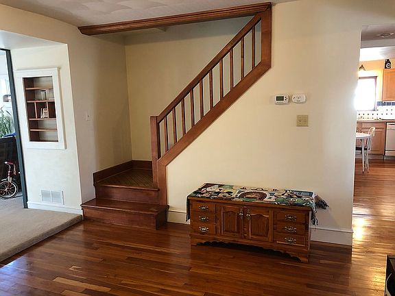 Beautifully maintained 2 story home has a spacious living room with gas fireplace insert and sliding glass door leading to deck. Entry space and modern eat-in kitchen with tile backsplash have wonderful cherry hardwood floors. Recently installed central HVAC with programmable wireless thermostat and gas hot water heater. Spacious lot is perfect for entertaining. Detached 1+ car garage has plenty of workspace and storage. This move in ready home is located within walking distance of hospital and downtown. Appliances included are: refrigerator, gas range, dishwasher, microwave, washer, dryer. In addition to traditional showings, virtual real-time showings are available via Facetime, Skype, or Zoom.