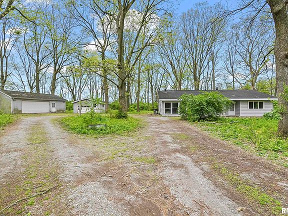 This two-bedroom ranch sits on 1.52 acres on a very private lot. The circle drive gives great access to the home and two detached garages. The home enters into a tiled eat-in kitchen with updated cabinets, a breakfast bar, a tile backsplash, and a stainless dishwasher, refrigerator, and gas range. Washer and dryer stay. Living room with gas stove. Two bedrooms sit on either side of a full bath, and the rear bedroom has sliding doors to the backyard, and the front bedroom has some newer windows. There is also a formal dining room and an office/bonus room. The family room was converted from a carport and has a stove and many windows. (It is unknown if the family room stove works to provide heat.) The whole house fan works. Gas water heater new 2021. Updated AC condenser and furnace. The home needs cleaning and some updates and repairs. Selling AS IS.