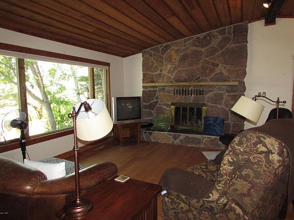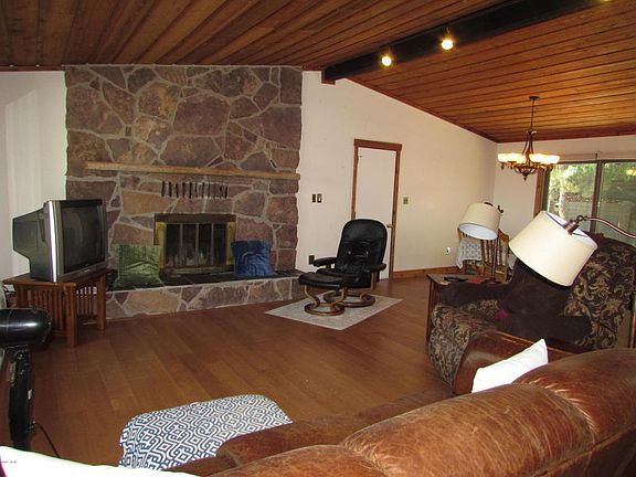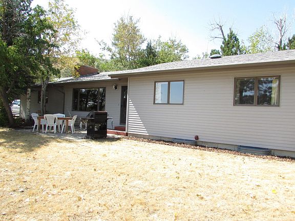 Close to town this spacious home on 5.24 acres has lots of mature trees. Kitchen has great counter space with Corian counters and antique finished cabinets. Sliding glass door off the large dining room to the back deck. Living room features a fireplace and terrific wood ceilings and rustic trim. Skylight in the hall adds a nice source of natural light. Three bedrooms and two bathrooms on the main level. The full basement: large family room with rock fireplace, den/office (could be 4th bedroom) Huge laundry room-room to set up large quilting machine. Three quarter bathroom and locked gun room. Attached double car garage. House and garage have metal siding app. two years old. Then there are the out buildings: Mechanic's dream!!! Heated shop/garage Geo says 2376 sq. feet. More. Close to town this spacious home on 5.24 acres has lots of mature trees. Kitchen has great counter space with Corian counters and antique finished cabinets. Sliding glass door off the large dining room to the back deck. Living room features a fireplace and terrific wood ceilings and rustic trim. Skylight in the hall adds a nice source of natural light. Three bedrooms and two bathrooms on the main level. The full basement: large family room with rock fireplace, den/office (could be 4th bedroom) Huge laundry room-room to set up large quilting machine. Three quarter bathroom and locked gun room. Attached double car garage. House and garage have metal siding app. two years old. Then there are the out buildings: Mechanic's dream!!! Heated shop/garage Geo says 2376 sq. feet. Grease pit and 10 foot doors give you plenty of room to work on your vehicles. Do you have motor home? Separate "car port" approximately 11X48 so unless your R.V. is bigger than that is should fit. Irrigation from Sun River, but yard is dry due to sellers traveling.
