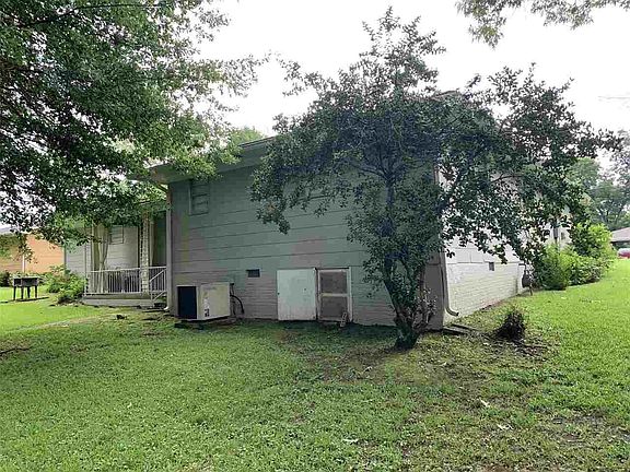 Mid-century home with 3 bedrooms & 2 baths, formal living & dining room, separate den with carpet. Hardwood floors throughout except den, kitchen & baths. Primary bedroom has THREE closets one being a walk-in with built-ins. Faux wood blinds on all windows. Two-car Garage. French doors in den lead out to covered porch. Porch has curtains.
