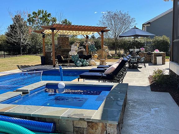 Former Sunset bluffs model home built by Dickerson Homes. This home features extensive woodwork and upgrades throughout with 5 true bedrooms and 4 full bathrooms and also includes bonus room, formal office and formal dining rooms. This property also features a large in ground pool with spa/hot tub, custom outdoor kitchen and 9 foot stone fireplace. The garage has also been upgraded with full cabinets, workbenches, shelves and epoxy floor.