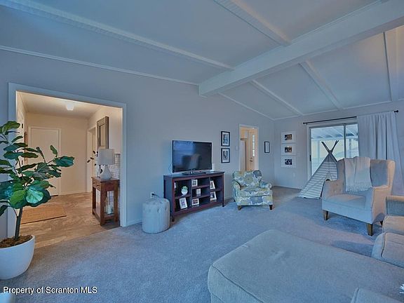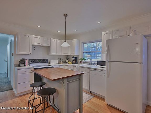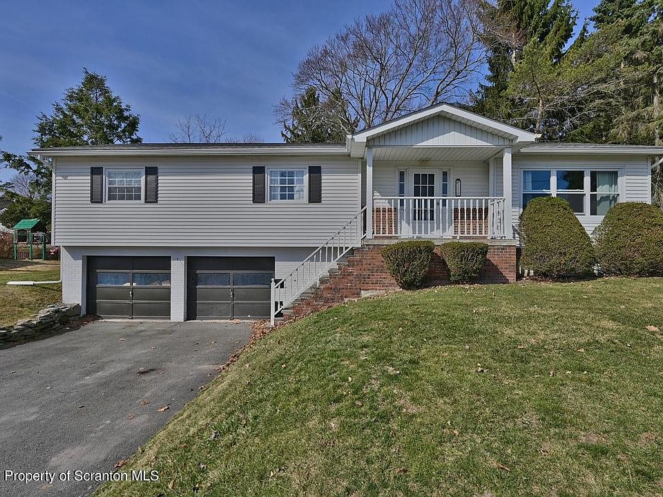 Nice raised ranch convenient to downtown Clarks Summit! Single floor living with large 2 car garage. Unfinished basement has potential for additional living space! Large living room with vaulted ceilings and sliding doors to covered patio. Spacious eat in kitchen. New carpet, fresh paint, modern full bath in hallway and additional half bath in master. Great value in Clarks Summit!