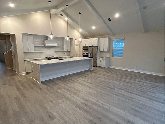 Our stunning Santa Fe floor plan, where luxury meets comfort in over 3,000 square feet of thoughtfully designed living space. This home features an expansive family room with vaulted ceilings, creating an inviting atmosphere. The owner’s suite, located on the main floor, offers a serene retreat, complemented by four additional bedrooms for guests or family, totaling five bedrooms and four full baths. Enjoy the convenience of a pocket sliding door that seamlessly connects indoor and outdoor spaces. The covered patio, adorned with a vaulted ceiling, is ideal for entertaining or relaxing. A spacious loft upstairs provides space, perfect for family activities. Designer trim and striking wood beams elevate the aesthetic, while hardwood stairs add a touch of elegance. Must haves include Hardie siding, irrigation system, gutters, blinds and SS GE Cafe appliances.* Location, Location! 15 minutes from Hyundai Metaplant & 15 minutes to Costco & Pooler.
