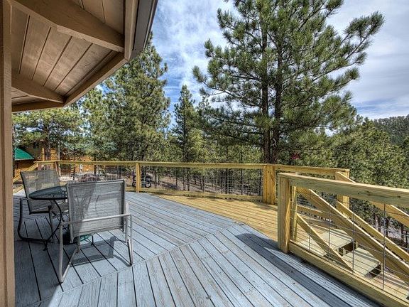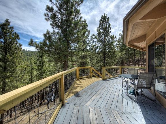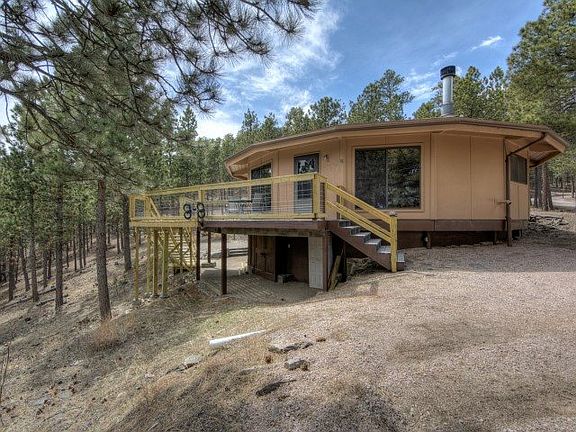Here it is! That One of a Kind cabin you have been asking for! This Fun shaped Cabin is a Pentadecagon (15 sided) 8 ft. per side cabin located in the Edelweiss Mountain Subdivision. This could be a great get a way cabin or a wonderful year round home. There are two levels to this home with a walk out basement. This uniquely built 3 bedroom 2.5 bath home sits on .88 acres with great views from the windows and off the large deck where there is plenty of room for entertaining! Good sized rooms with a spiral staircase from the living room to the basement where there is a nice family room with access to the patio just outside the door. A beautiful slate fireplace is located in the living room area that can heat the whole place or just take the chill off. Enjoy the night time skies and peacefulness from this area. This home is actually located between Pactola and Sheridan Lake where I hear the fishing is Great!