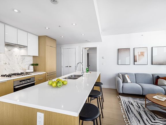 Welcome to Lido by Bosa Properties! This modern corner 2 bed/2 bath located in the heart of Olympic Village. This fantastic functional home features large windows providing natural light, A/C year round, and wide plank flooring throughout. Gourmet chef kitchen with S/S Miele appliances, gas range stove, integrated fridge and beautiful stone countertop and backsplash. Kitchen flows seamlessly into your airy living and dining area with direct access to your patio. Spacious bedrooms with sizable closet space and spa-like bathrooms. Luxurious amenities with pool, sauna, gym and concierge! Storage and secure parking included in this meticulous concrete building. Unbeatable location with steps from the seawall, restaurants, shopping, transit, and mins to downtown. OH Sat & Sun Apr 1 & 2, 2-4pm.
