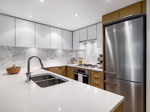 Welcome to Lido by Bosa! This modern 2 bedroom/2 bath is located in the desirable Olympic Village. Large windows provide interior natural light, elegant hardwood floors and year round A/C. Spacious living area flows into a large outdoor space presenting sweeping mountain views. Gourmet kitchen with SS appliances, gas range stove and beautiful marble backsplash. Master bedroom offers plenty of closet space with a spa-like ensuite. Storage and secure parking included in this meticulous concrete building. Luxurious amenities with pool, sauna, gym and concierge. In the heart of OV with steps from the seawall, restaurants, shopping and transit! First showing by appoint on Thur Jan 27 5-6pm, Open house Sat & Sun Jan 29&30, 2-4pm