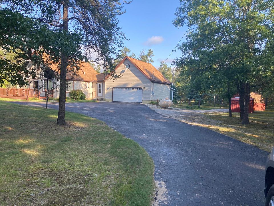 This house features 3 bedroom, 2 bathroom,2 car attached garage, 2 sheds with sunroom that looks out the backyard with wood fire pit. This Beautiful Chalet is nestled in 10 Acres with groomed trails throughout. Only 3.5 miles North from downtown Roscommon. Must see property.