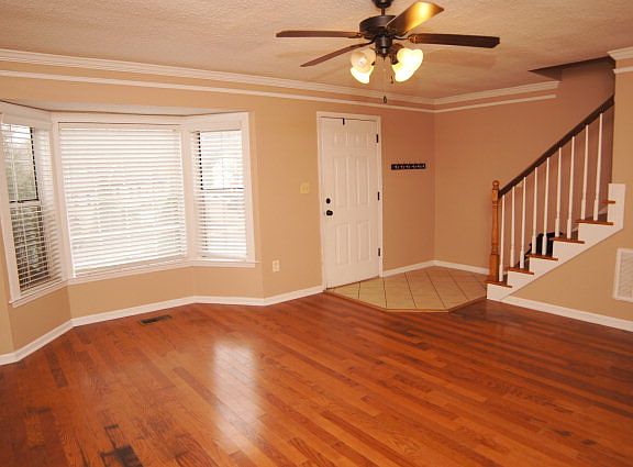 Quaint townhouse in convenient location...New paint and back door. The family room has a wood burning fireplace and natural lighting. There is a dining room and kitchen on the main level, the kitchen features black appliances and wood cabinets.. The laundry closet is located in the kitchen on the main level. Hardwood floors Throughout (Excluding Bathrooms & Kitchen-Tile) There is a half bath and a cute built-in on the main level as well. Upstairs you will find 2 bedrooms each with a private bathroom and hardwood floors. Tons of closet/Storage space. Outdoors you will find a fenced yard with deck, great for entertaining. A MUST SEE!