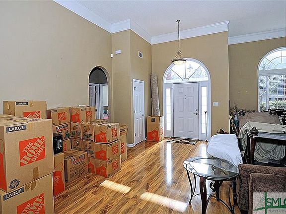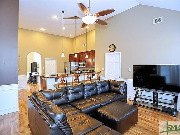 Meticulously maintained 4 bedroom, 2 bath home in the bustling city of Pooler. Home Features wood laminate flooring in all living and entertaining areas, The kitchen has upgraded Zodiac counter tops, kitchen island, and custom built-in cabinetry with coffee area, an abundance of storage. Long breakfast bar overlooking the hearth room with fireplace. Vaulted ceilings throughout home, 10 foot minimum ceiling height add to the overall openness of this gorgeous home. Personalized trim in each room. Exterior with cathedral ceiling in covered patio overlooking spacious fenced in yard. Back gate opens to a small lagoon. Conveniently located in close proximity to Pooler Parkway, I-16, I-95, Gulfstream & Airport. Shopping, Grocery Stores & Entertainment are just minutes away.
