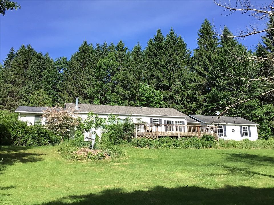 One level living on almost 5 acres. Lots of space in this manufactured home in Harpursville. Bright kitchen with a large pantry or storage closet. Large living room with a fireplace. The larger bedroom opens up to a side porch. Large bathroom with laundry hookups. The 2nd bedroom has its own bathroom with an oversized tub. The garage has a finished room that would make a great workshop or space for entertaining. Newer windows, roof and furnace. 4.65 beautiful private acres. Call your favorite Realtor today to schedule a showing!
