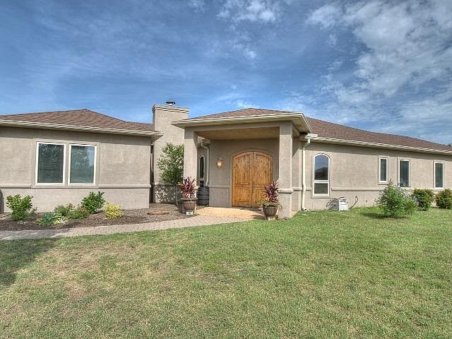 Dramatic Hill Country views of Packsaddle Mountain. 5 acre spread in a gated subdivision with a fenced and gated entry. Original owners were builders so the finish is quality throughout.