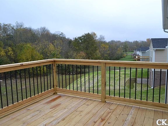 Quality construction by Sharpe Construction Company! CITY SEWER but NO city property taxes. Underground KU electric. Extra wide foyer. Master suite privately located on opposite side of home from the other two bedrooms. Two walk- in closets in the home. Cathedral ceiling in Great Room. Kitchen offer portable work island with snack bar. Breakfast nook overlooks tree line and Spears Creek. Dual vanities in master bath. Attractive manufactured hardwood, ceramic tile in baths, carpet in bedrooms. Patio plus Wood Deck. Unfinished basement has plumbing roughed in for third bath. Unfinished Basement does not have HVAC. Abundant storage. Potential for making a 4th bedroom.
