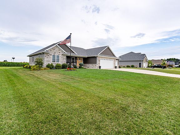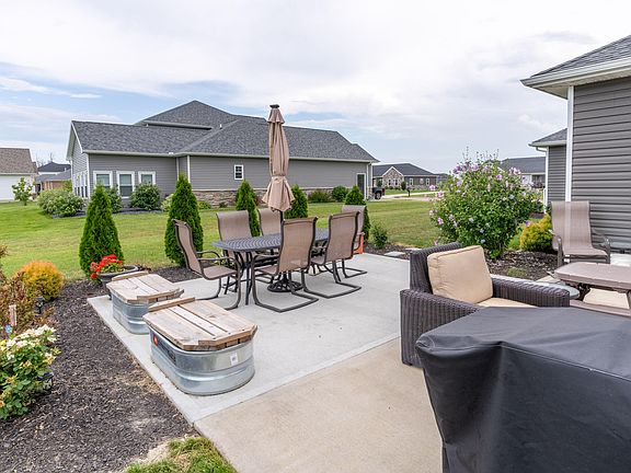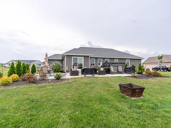 Outside,enjoy your 40 X 20 back patio overlooking a open fields. The property has all new landscaping, a three car garage and sits on a half acre lot.