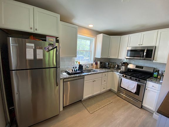 Made up of three attached townhomes, these newly built (2019) units are designed perfectly for couples, young professional needing space to work from home, or individuals seeking a scenic yet practical space. Offering 2 spacious bedrooms, 1.5 baths, and plenty of extra living space, this townhome is the perfect balance of privacy and practicality. They're very conveniently located, with easy access to Main Street East Greenwich, Providence, TF Green Airport, MBTA to Boston, Bald Hill Rd, parks, malls, restaurants, and more, ensuring that your daily commute and weekend getaways are a breeze. Key Features: 2 bedrooms, 1.5 bath: Every room is meticulously designed to offer generous space. Upstairs, a spacious full bathroom ensures ample room, while the main floor features a sizable half bath for added convenience. Kitchen: Stainless steel appliances and granite countertops- a comfortable and stylish space to cook or entertain guests. Ceilings: The master bedroom boasts vaulted ceilings, filling the space with natural light and creating a sense of spaciousness. Outdoor: Private patio area overlooking a gentle flowing stream providing a retreat for relaxation and outdoor enjoyment. Storage: Private finished basement adds an additional space to use as a home office, workout space, or tv room. Laundry: In-unit, private washer and dryer making laundry a breeze. Parking: Off street parking included Comfort: Central Air Conditioning & Heating system All the convenience for a dynamic lifestyle, while preserving a private and neighborly atmosphere next to the creek. To schedule a showing or learn more about this rental, please inquire through the Zillow messaging platform. No smoking | No pets Twelve month lease. Tenant pays for electric and gas. Landlord provides water, sewer, trash removal, landscaping, and snow removal. Tenant is required to maintain renters insurance policy with liability coverage of at least $500,000 throughout term of lease. Typical coverage costs between $10-25 / month.