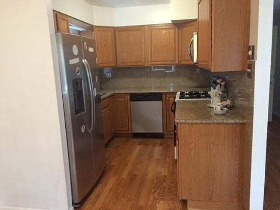 Great location, 2nd floor unit with 2 bed, 1 bath and 1 car garage. Updated kitchen with all SS appliances include fridge, gas stove, dishwasher and microwave. Newer bathroom, newer flooring and more. Basement includes washer and dryer and good size storage. Conveniently located near train station, shopping, transportation, restaurants and more! 12 month lease, water included