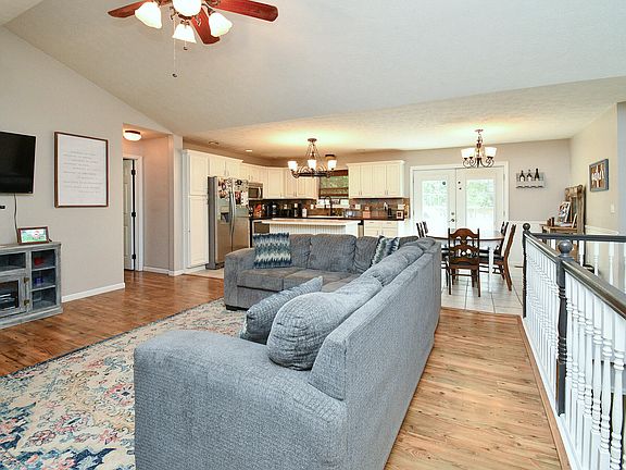 This beautiful home is conveniently located just outside of Highlandville and offers modern updates on a 2.8 acre lot. Sit back and relax in the backyard or enjoy a cup of coffee and nature in the sun room! This home will provide plenty of space for you to entertain family and friends with two separate living areas, 5 beds/3 full baths and a two story back deck. A large brick fireplace with cathedral ceilings is opened to the remodeled kitchen with island that welcomes you when you walk in the front door. Spacious primary suite with a remodeled primary bath. Double sinks, walk-in tiled shower & a walk-in closet. New HVAC and a basketball court, what more could you want?