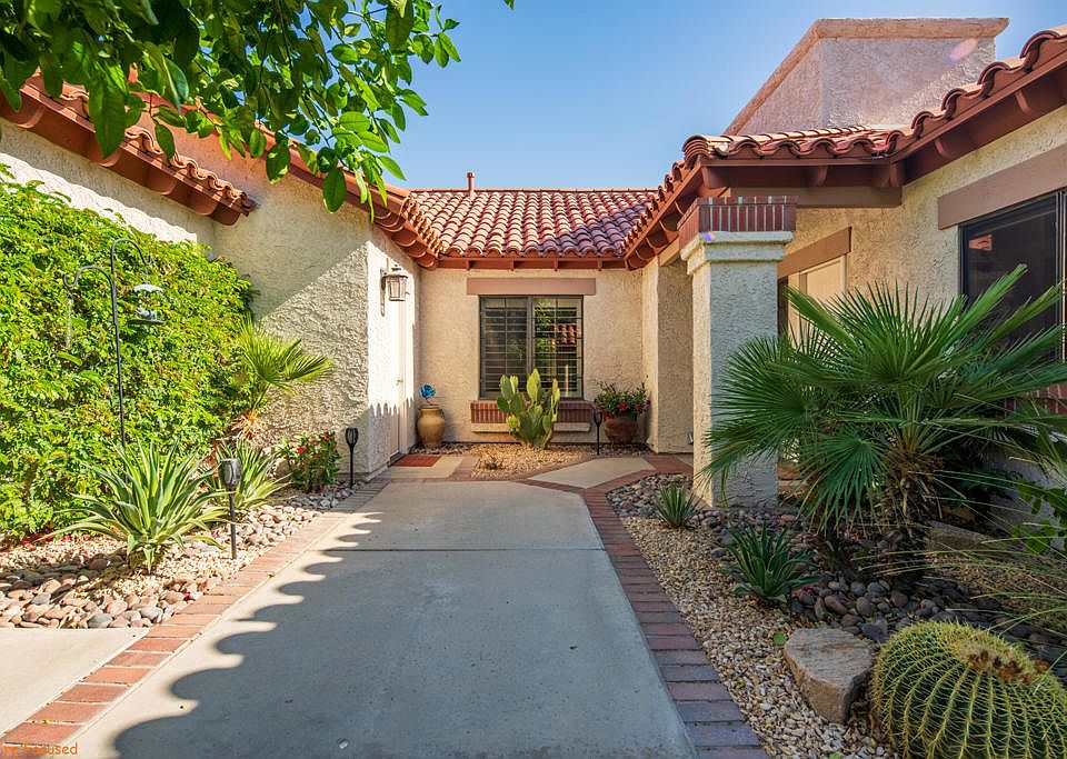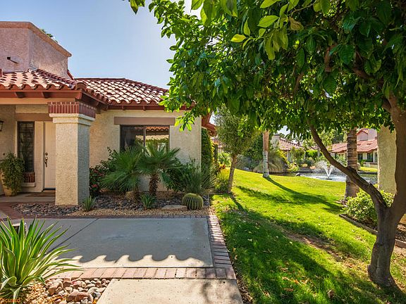 Great opportunity to experience the desert lifestyle in highly desired location within Desert Falls Country Club...this property is conveniently located close by the clubhouse and fitness center where you can enjoy a brisk game of pickle ball or work out with state of the art equipment...the championship golf links is one of the finest courses in the desert...memberships are available or pay as you play...and after a day of fun, relax on your patio with gorgeous views and relaxing sounds from the nearby water feature...This property has been tastefully remodeled and beautifully appointed...the open floor plan feels spacious and inviting...plenty of room to entertain guests...new epoxy garage floor with spaces for two cars and a golf cart...conveniently located to fine dining, El Paseo shopping and the Acrisure Arena...this property checks all the boxes...