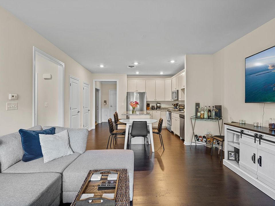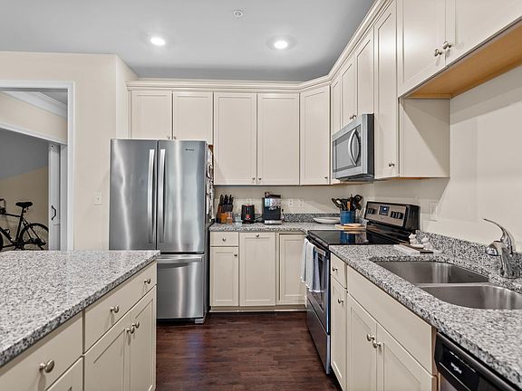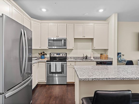 OFFER ACCEPTED....Welcome home to this beautiful single level condo that has everything you need! This unit is nicely located on the 2nd floor and features an open concept floor plan. Kitchen, dining and living room boast amazing hardwood floors that lead you right to your private balcony, overlooking a pleasant green space. The gourmet kitchen comes equipped with stainless steel appliances, granite countertops, and a large island with additional cabinet storage, perfect for entertaining or prepping larger meals. The master suite has wall to wall carpet and a large walk-in closet. Full-bath large enough to share, with tile floors, vanity & shower/tub with glass door. Home gym directly across from the in-unit laundry room, provides an alternative room that could easily be used as a home office or guest space. Conveniently located near commuter rail, parks, shops and hiking trails. Off-street parking, security cameras, and private access code for entry.