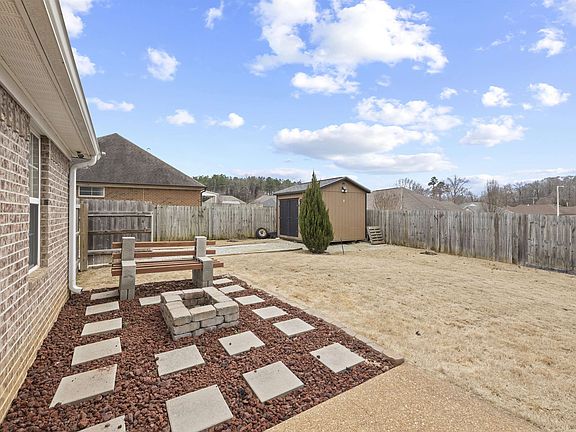 Nestled in an amazing neighborhood, this charming 3 bedroom, 2 bathroom split floor plan home offers the perfect blend of comfort, convenience, and outdoor living. As you step inside, you'll be greeted by the warm and inviting atmosphere of the open living area with cozy gas logs. Beautiful wood breakfast bar between the Kitchen and Great Room is certainly an eye catcher. The spacious master bedroom boasts a private bathroom with double vanity sinks, while the two additional bedrooms share a second bathroom with tub/shower combo. The split floor plan design ensures a peaceful and quiet environment. Additional features include stainless applicances in the kitchen, fenced in yard for added security and outoor living, and storage building for extra storage needs.