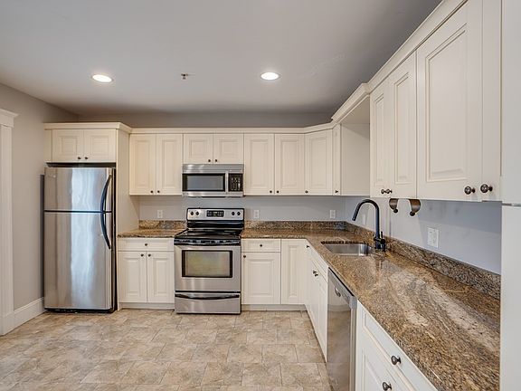 Large 3 bedroom condominium with finished bonus room in lower level! Move in ready for you. Huge fully applianced eat in kitchen with Stainless Steel appliances, recessed lights, tile floor and granite countertop, 3 big bedrooms with lots of closet space, living room with bay window and all main rooms have wood floors. Beautifully updated and upscale bath. Lower level has super large bonus room plus separate laundry area. Additional storage in common basement. Big 12x15 deck off kitchen adjacent to the 2 car deeded parking, landscaped grounds, low condo fee and great access to transportation, shopping and Boston. Move in ready.