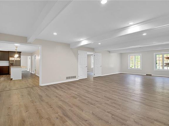Beautifully renovated sprawling ranch home on 1.5 acre scenic lot in serene green woodland setting of tall trees yet convenient to everything. Versatile spacious open floor plan is great for entertaining or to relax with those you love. Magnificent new 23X12 kitchen with quartz counters, large island and new stainless steel apliances. 39X18 great room with log burning fireplace on the first floor. First floor laundry room with new washer and dryer. 3 gorgeous new bathrooms. Bright and neutral new flooring and freshly painted throughout the home. 40X24 finished gameroom in the basement opens to large covered porch over-looking natures wooded beauty. 4th bedroom can be a den. Must see!