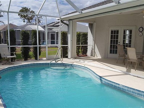 Welcome to this 3 bed, 2 bath pool home located in Deep Creek on an oversized lot with a side and rear greenbelt. Great curb appeal with nice landscaping and a 3 car garage with screens. The tiled screened front entry allows you to open the front door and let the breeze flow through the home. Upon entering the home you immediately have a view of the private pool and screened lanai with a waterfall and solar heat. There is a formal living room and dining room with ceramic tile floors that leads you into the open bright kitchen with all appliances, eating area and family room. A great floor plan for gatherings. The bedrooms are split with the master on one side and the guest bedrooms on the other. The master suite is wheel chair accessible and features carpet, two walk in closets and French doors leading to the lanai. The master bath has dual vanities, a soaking tub, and a tiled walk in shower. The garage features speckled floor paint, a workshop area, garage door opener and mana bloc plumbing. The huge laundry room includes the washer, dryer, freezer and storage cabinets. Some pluses are accordion hurricane shutters, 9 ft ceilings, and couty water and sewer. Located close to I-75 and Kings Highway for easy travel and convenient to shopping, restaurants, grocery and more. Call to scheulde your showing today! New photos coming soon.