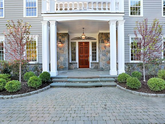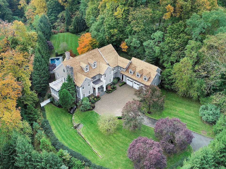 Exquisitely updated six-bedroom colonial provides a peaceful oasis on a 1.62 beautifully landscaped acre with a pool on a private lane in a great mile from town location. Highlights stunning architectural details; new chef's marble-clad eat-in kitchen with expansive terrace that opens to family room with stone fireplace; dramatic double height entry; spacious living room with fireplace; dining room with butler's pantry; sunroom; his/her offices, en-suite bedroom and attached three car garage. An enticing master suite with fireplace in large sitting room, balcony, dual walk-in closets and spa bath with steam shower, soaking tub as well as four en-suite bedrooms comprise the second floor. Lower level pool cabana/great room with full bath, French doors to garden. Exceptional value!