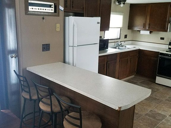 1981 North American 14' x 66' Mobile Home. 2 bedroom, 1 bath. Front living room, center kitchen. Large wood deck & storage shed. Newer windows. All appliances stay. New floors throughout mobile home. New toilet, new vents. Mobile Home to be sold as-is. Lot rent is $255/month & buyers must be approved through the park. Mobile Home tax is $80 per year. Full pool access included being a resident. Two parking spots in the driveway plus street parking.