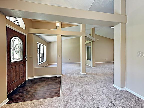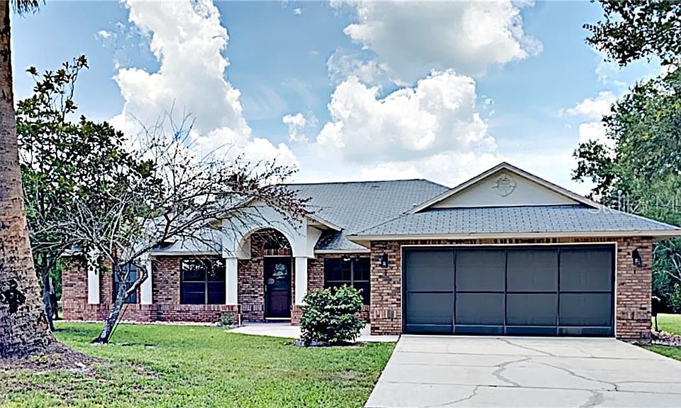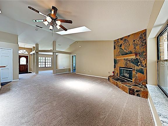 Nice looking 4 bedroom, 2 bathroom home located on corner acre lot. New interior paint, new flooring (carpet and vinyl plank), and updated plumbing. Pass through kitchen with stainless steel appliances including gas range, and breakfast bar. Vaulted ceilings and skylights brighten the home up. Family room with corner fireplace. Master bedroom suite includes separate sitting area/office and en-suite bathroom featuring dual sinks and low threshold shower. Screened in lanai overlooks open patio and huge fenced backyard with mature trees. Plus new roof to be installed. Stop in and take a look today
