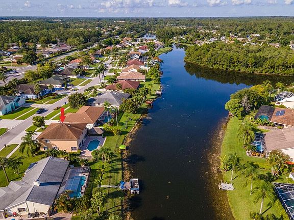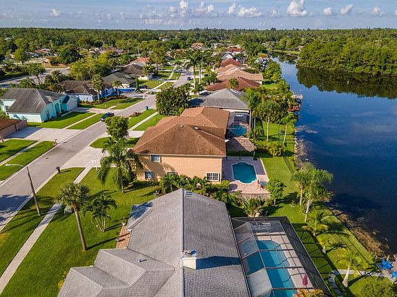 ENJOY LIFE FLORIDA-STYLE! NO HOA!!!!! Waterfront, Pool, and lots of rooms. 5 Bedroom HOME DESIGNED FOR ENTERTAINING AND/OR A LARGE FAMILY. This home offers plenty of living space, a dining room with a stunning WATERVIEW, a living room, a family room, and an eat-in kitchen. All five bedrooms are upstairs. This beautiful home has three full baths, and the garage has been converted into a huge media room. The laundry is located on the first floor. Outside you will find a peaceful and unique tropical paradise. Enjoy the gorgeous sunsets from the pool. Bring kayaks, small boats, and fishing poles from your dock on a navigable canal. Must see yourself!!!!!
