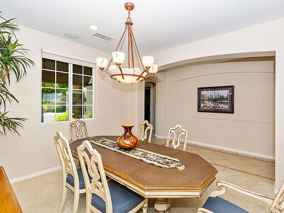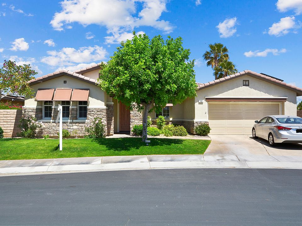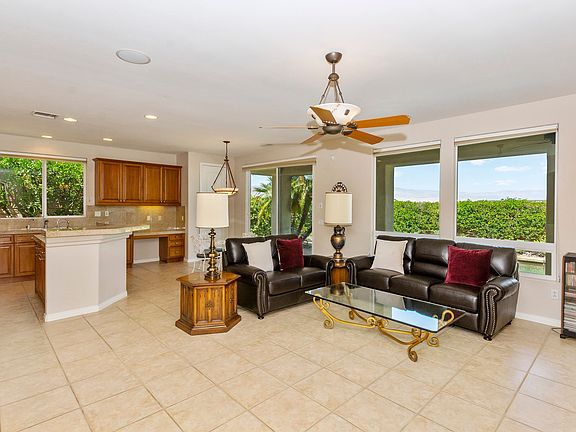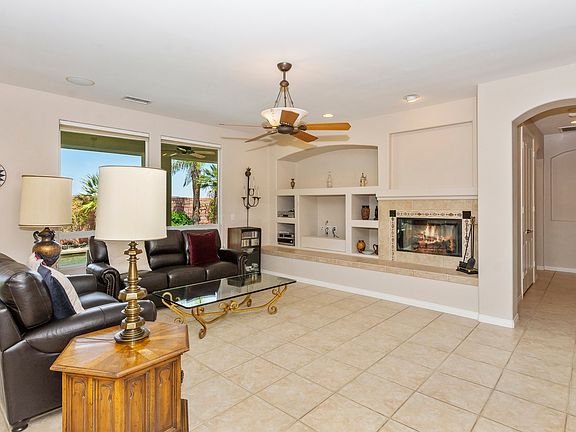 When driving into Tuscany just off Davall in Rancho Mirage, you will be greeted with a magnificent water feature. Turn right. Nestled on the back side of this development is this beautiful stone enhanced home featuring 3 bedrooms (one of them has built-in furniture for a large office) and two full baths. When entering this home off the to the right there is a formal dining room for entertaining your family and friends. To the left, you will find two carpeted bedrooms and a full bath. Straight ahead is the great room with a gas fireplace and a large window peering out to the pebble tech pool and raised spa. The kitchen is open to the great room featuring granite tile counters and plenty of space for food prep. The solar panels provide for energy efficiently, not to mention the low HOA dues. The master suite has a large walk-in closet and separate tub and shower which is on the other side of the house for your personal privacy. No neighbors behind you. There is also a two car garage.