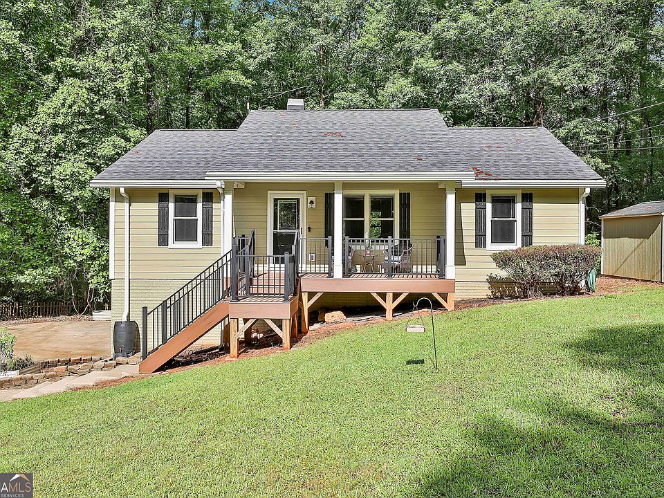 Immaculate and Charming three bedroom, two bath ranch conveniently located between Newnan, Peachtree City and Sharpsburg! Two additional finished rooms in basement have closets and a half bath. Perfect for office or possibly used as additional bedrooms 4 and 5! Granite counter tops in kitchen and both bathrooms. All new Trek Decking for front porch and back! Relaxing Screened in Porch added overlooking peaceful and private back yard. Roof Replaced 2023, HARDIE SIDING Added 2022, HVAC Replaced 2020, Water Heater Replaced 2018. Outbuilding for additional storage. Better than brand new! 100% FHA Financing available through Preferred Lender. Call Listing Agent for more info!