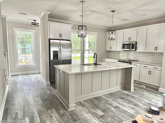 New construction and great location! Introducing Smithville Townes! This 3 bedroom, 2 + 1/2 bath END UNIT townhome is newly built and will be complete in the next 30 days. The master bedroom is on the first floor and offers a large walk-in closet, en-suite bath that has beautiful quartz counter tops, tile floors and walk in shower. The open floor plan is bright and airy and offers LVP flooring throughout. The gorgeous kitchen boasts 42'' upper cabinets, quartz counter tops, stainless steel appliances, soft close drawers, walk-in pantry, and has an oversized island perfect for entertaining. The large great room offers a fireplace with custom built ins, and has a door that opens out to the screened in porch and fenced backyard area. Upstairs you'll find 2 nice-sized bedrooms, a full bath and a loft area that can be used for a home office, craft room and more! If you need some extra space for storage there's an oversized 1 car garage; perfect place to store your golf cart, bikes and beach essentials. With all this and its close proximity to downtown Southport, this one is sure to sell fast.
