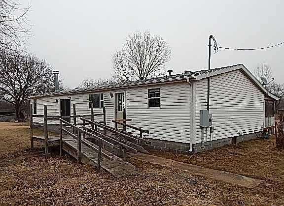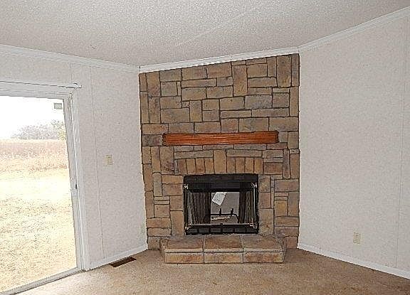 This is a Manufacture home with 3 bedrooms and 2 bathrooms and fireplace in the living room.