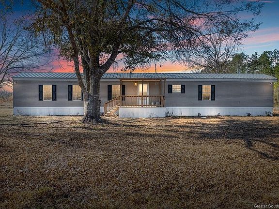 This 3 bedroom 2 bath Manufactured Home occupies a beautiful half acre corner lot in Ragley located just minutes off Hwy 171. 1998 Sunshine Zone II mobile home with a new metal roof, a new front porch, and back porch steps. Updated with all new paint and floors. Large spacious kitchen has an abundance of cabinet space and is open to the living room with a wood-burning fireplace. The large master suite has 2 deep closets, a double door entrance into the master bathroom which features vinyl plank flooring, a large soaking tub, and a walk-in shower. The additional bedrooms are a good size and have nice-sized closets. Property is located in Flood Zone X so no flood insurance required. South Beauregard schools. This home is move in ready!