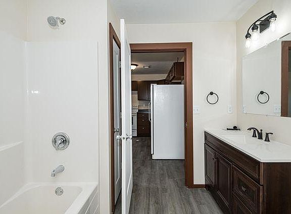 Fully remodeled 3 bedroom apartment. New flooring, kitchen, bath, paint throughout. Washer, dryer included in unit. Brand new furnace and central air conditioning and air exchanger. Plenty of off street parking. 915 total sq feet. 1 year lease. Available 5/1 1 year lease. Background, Credit, rental and work history check via application. No pets. Tenant pays utilities.