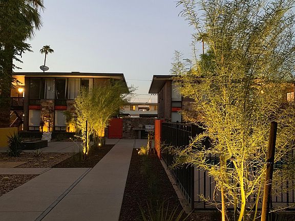 Best Mid-Century Modern Apartment Complex in Phoenix........... Recently restored to its original Mid-Century Modern condition, this 32 unit botique apartment complex features spacious one and two bedroom units in trendy midtown/uptown Phoenix . The Brentwood is located on Maryland Avenue in an upscale residential neighborhood located directly off Central Avenue. Recent renovations include all new lush desert landscaping, new exterior lighting, refurbished pool and spa decks, new parking carport, and newly renovated residential units. Interior finishes at The Brentwood include quartz countertops with custom tile backsplashes. Sit out by the pool and spa and enjoy a drink and visit with your friends, BBQ on the grill, and if your just looking to sit back and relax you can watch the flames flicker in the new fire pit. There are available storage units on the property for rent.