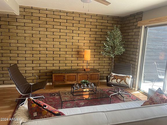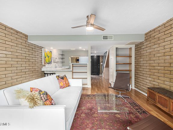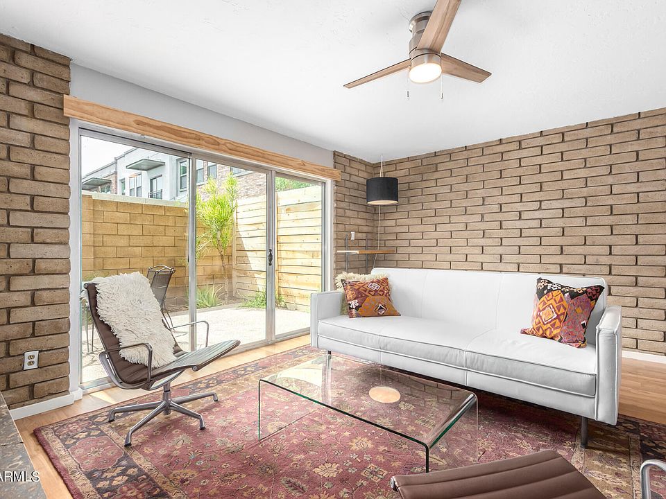 Rare opportunity to live in Uptown Phoenix's iconic mid-century modern Central Park West community. This two story townhome is one of the 2 smallest units in this charming and intimate community centrally located in the heart of this convenient neighborhood. Close to restaurants, shopping, downtown, light rail etc. Exposed slump block walls, updated kitchen & baths, customized built-ins for maximum storage. Large salt water community pool, 2 assigned covered parking spaces plus storage area. Don't miss this great property!