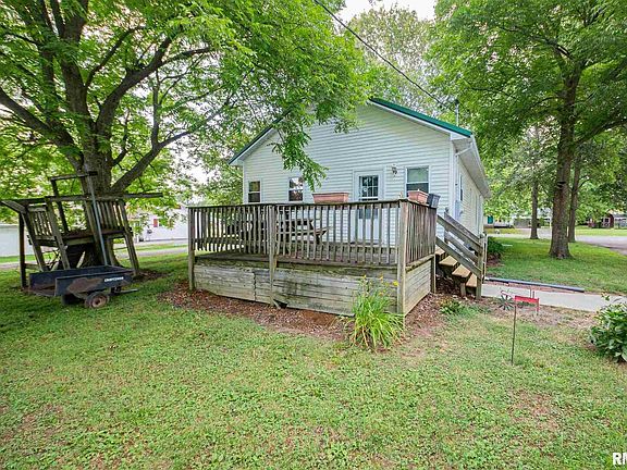 Checkout this amazing home; located in small town close to Rend Lake . This shaded 2 lots has 30 x 40 4 car garage . Original hardwood floors in excellent condition, back deck, enclosed front sitting porch, Trane gas furnace and central air only 3 years old ,2 bedroom with 2 bathrooms. Partial basement